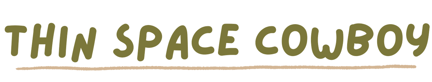 Thin Space Cowboy is a reader-supported publication written and created by Lindsey Kelley. Click here to subscribe or gift a friend a subscription here (if a friend sent you this email—tell them thank you!). Have questions? Requests? Reply to this email to reach me directly!